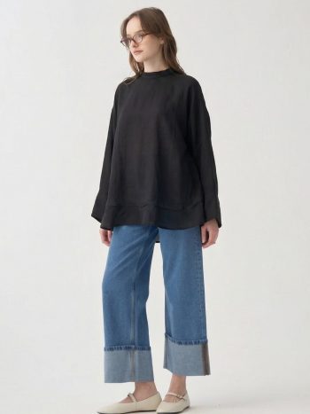Black Hidden Slit Long Shirt
