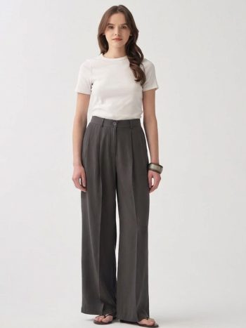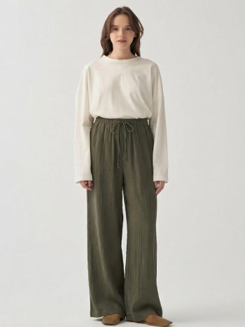 Şıklığı detaylarda arayanlara özel Haki-Beli Lastikli Müslin Pantolon ile zarif bir görünüm yakalayın. Günlük ve özel kombinler için ideal tasarım