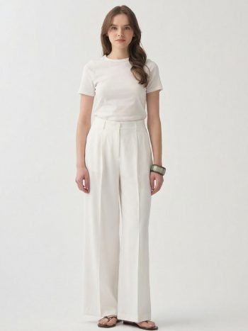 Achieve an elegant look with the White Pressed Crease Detail Palazzo Pants, designed for those who seek sophistication in details.