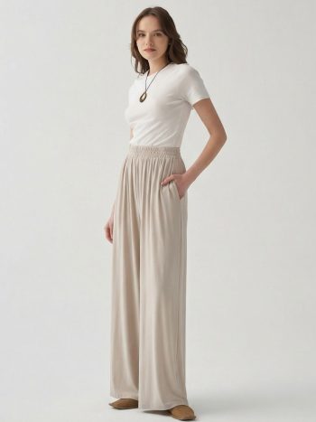 Stone-Waist Elastic Wide-Leg Trousers