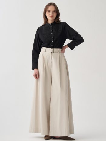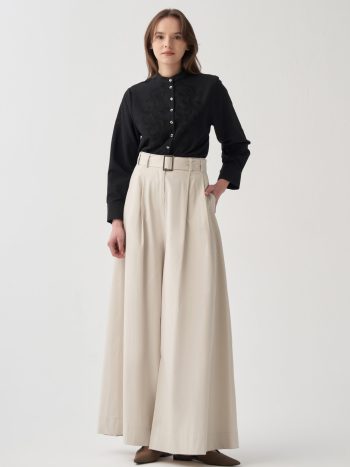 Achieve an elegant look with our Stone-Belted Pleated Wide-Leg Pants, designed for those who seek sophistication in details. Ideal for