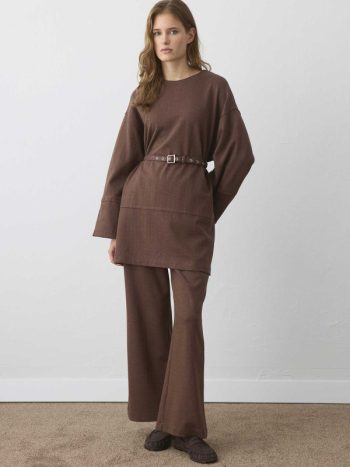 Poplin Knit Cardigan Detailed Mink Pants Set