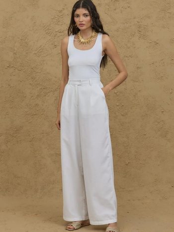 Ketenli Palazzo Pantolon Beyaz