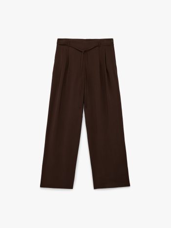These trousers offer an elegant style with a classic wide-leg cut and drawstring waist design. The softness and draped structure