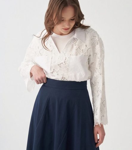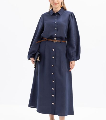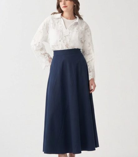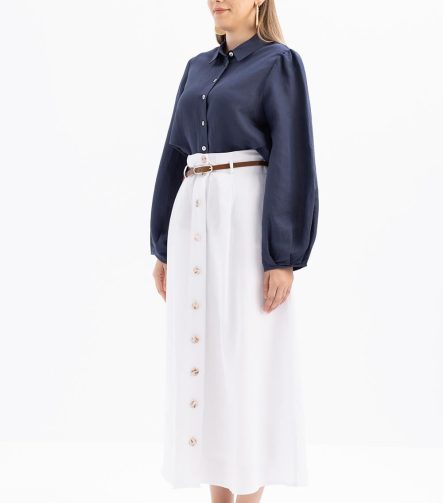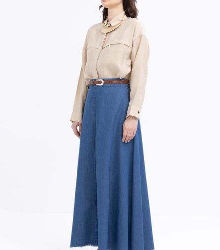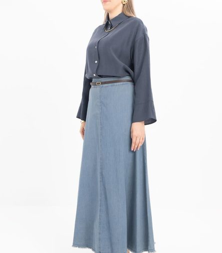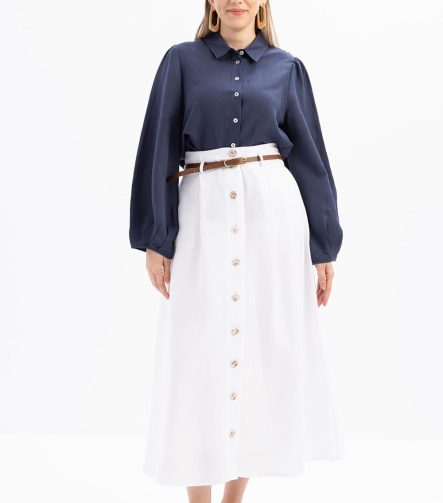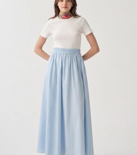 Mavi-Poplin Etek