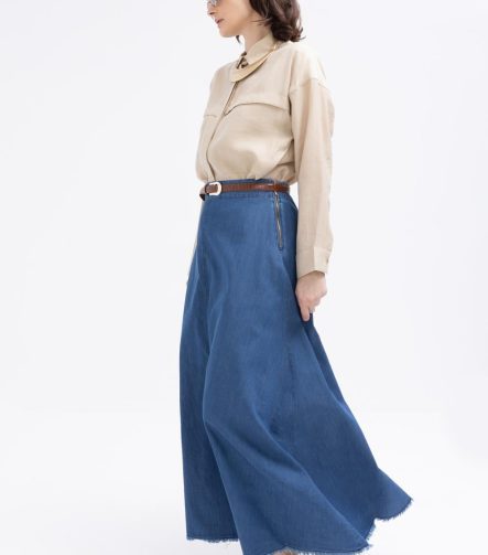 Indigo Pleated Belted Flared Skirt