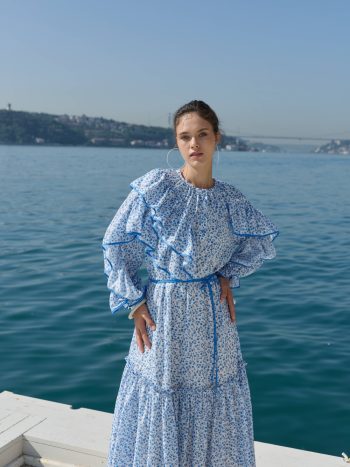 SPECIAL DESIGN FLORAL PATTERNED COTTON DRESS LINED, NON-TRANSPARENT FABRIC CONTENT 100% COTTON ADJUSTABLE WAIST WITH DETACHABLE BELT. SIZE 1: 36-38-40