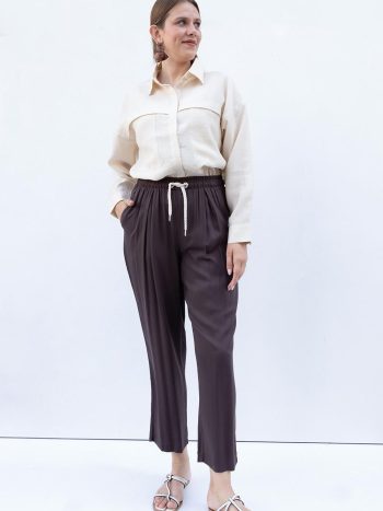 Capture a modern and comfortable style with our Coffee-Colored Elastic Waist Wide Leg Pants. Discover other models in ALLDAY’s Viscose