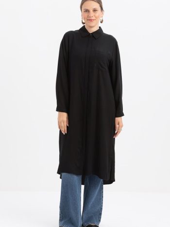 Capture a modern and comfortable style with our Black Slit Pocket Long Shirt. Explore other models in ALLDAY’s Shirt category.
