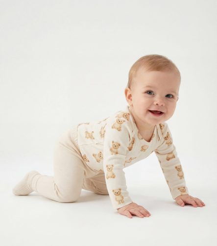 Beige Printed Snap-Button Bodysuit and Leggings Set for Baby Boy