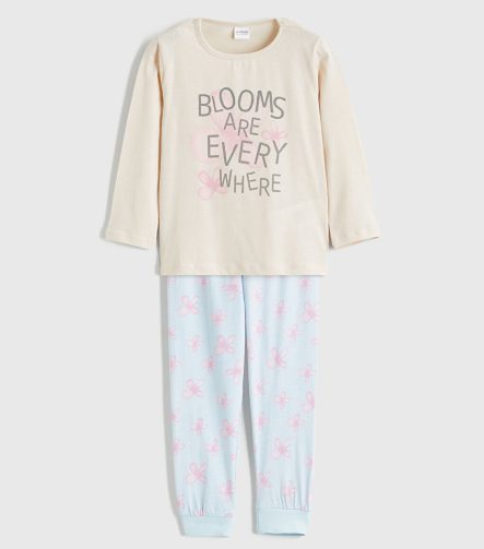 Beige Printed Girls’ Pajama Set