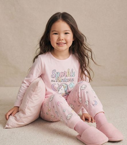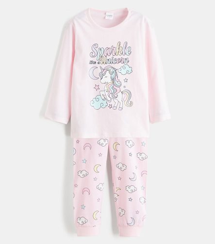 Pink Bicycle Neck Print Girls’ Pajama Set