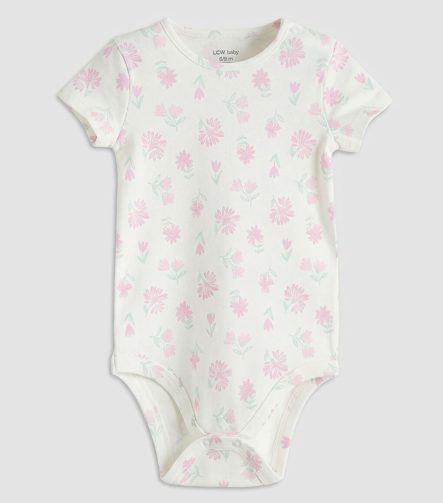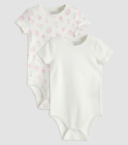 Ecru Bicycle Neck Short Sleeve Girl Baby Snap Button Bodysuit 2-Pack