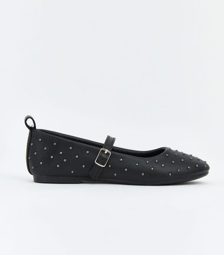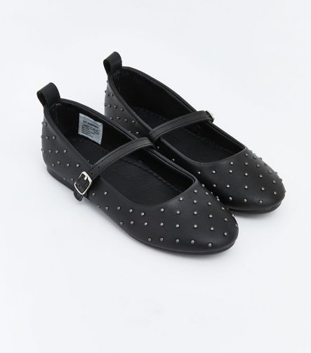 Black Bow Strap Staple Detail Girls’ Ballet Flats
