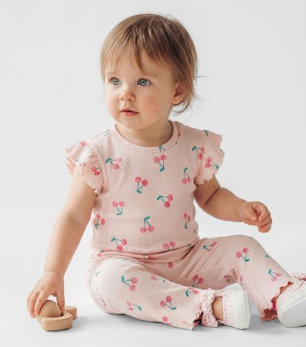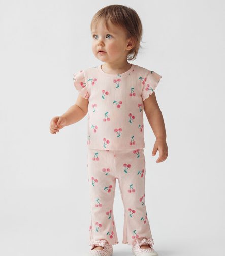 Pink Girls’ Baby Ribbed Spanish Flare Leggings and T-shirt Set