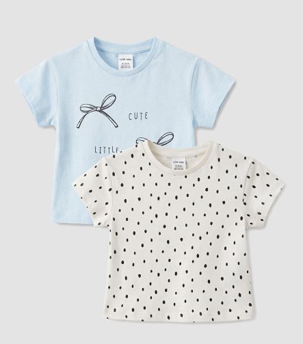 LCW baby Blue Bicycle Collar Printed Girls’ Baby 2-Pack T-Shirts