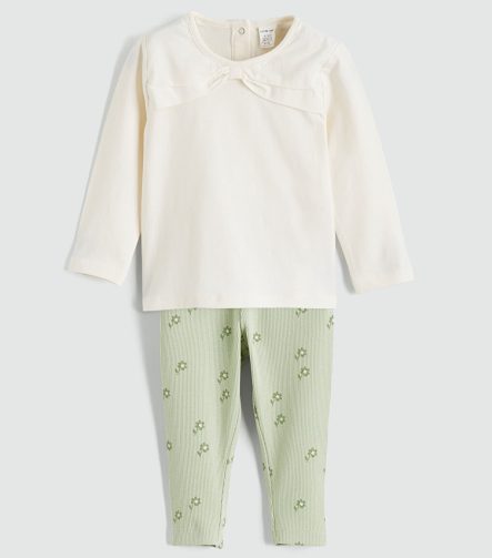 Beige Girl Baby Long Sleeve Blouse and Leggings Set