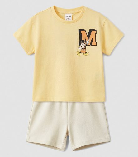 Orange Mickey Mouse Print Boys’ Baby T-Shirt and Shorts Set
