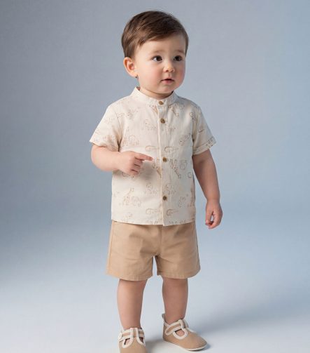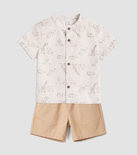 Ecru Animal Print Baby Boy Shirt and Shorts Set