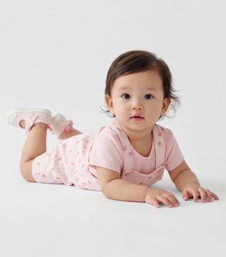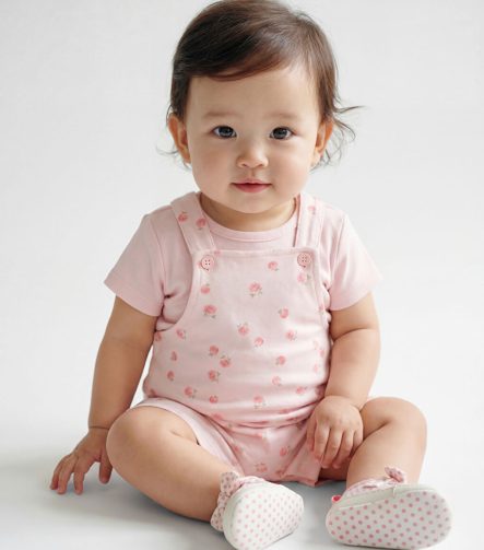 Pink Printed Baby Girl Overalls and T-Shirt Set