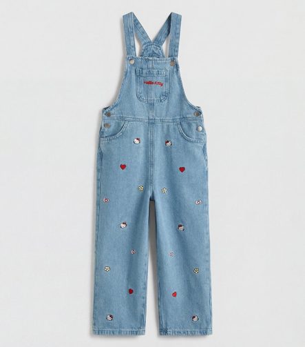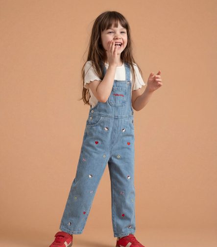 Indigo Hello Kitty Embroidered Girls’ Jean Overalls