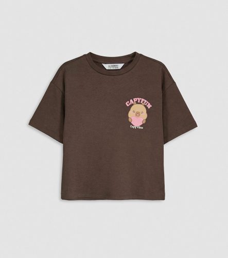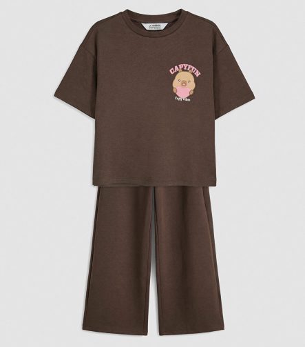 Brown Capyfun Printed Girls T-Shirt and Sweatpants Set