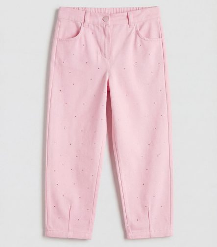 Pink Girls’ Stone-Embellished Gabardine Trousers