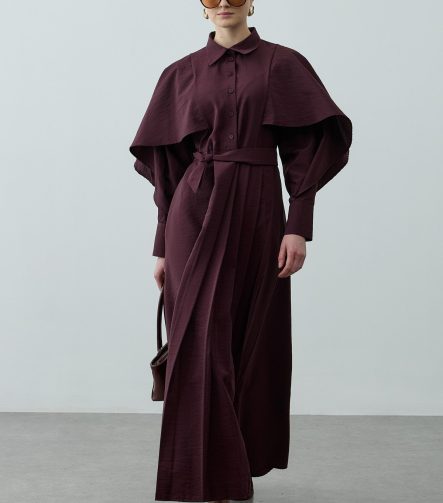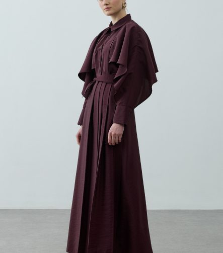 Single Pocket Detailed Long Trenchcoat Bordeaux