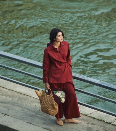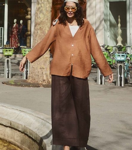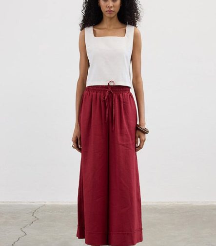 Wide-Leg 100% Linen Pants in Bitter Chocolate