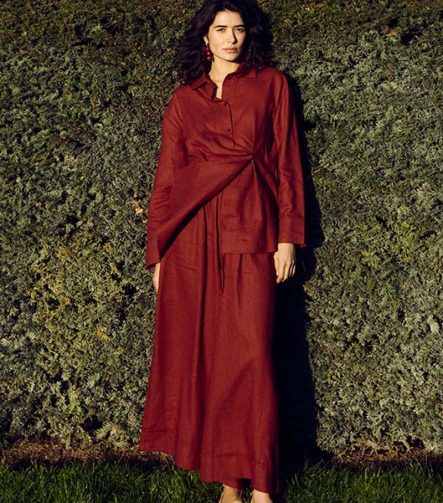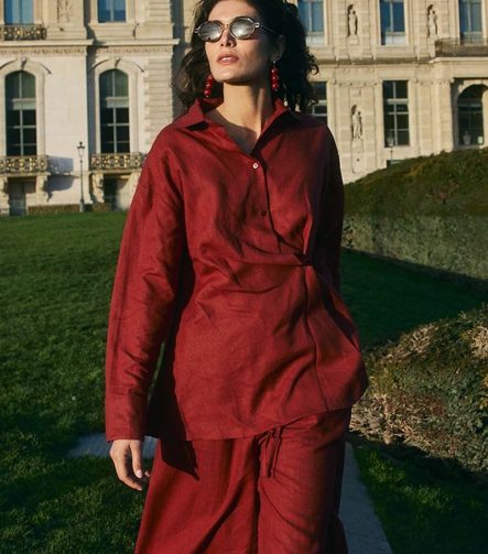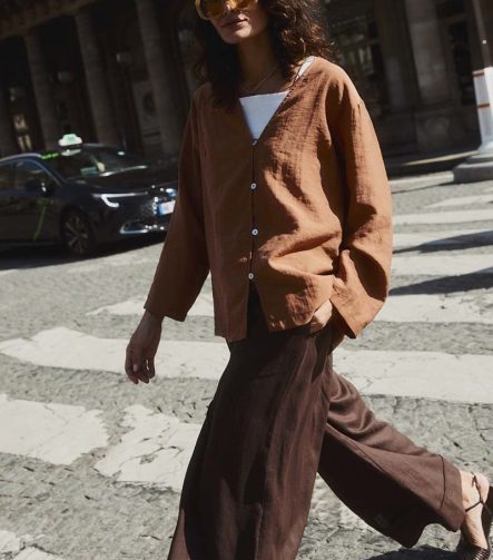 Cross-Button 100% Linen Shirt in Bitter Brown
