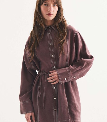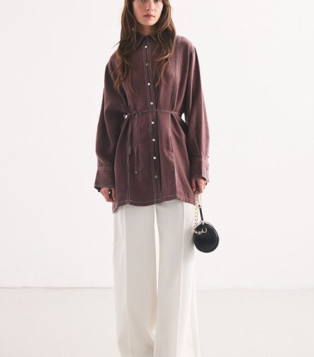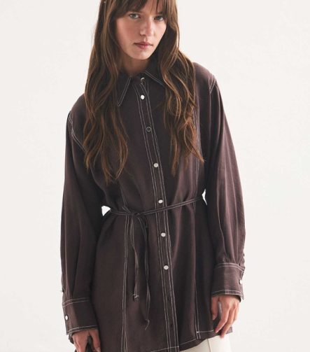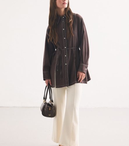 Gardenya Double-Stitch Detail Chocolate Shirt