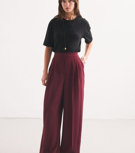 Pileli Palazzo Mürdüm Pantolon
