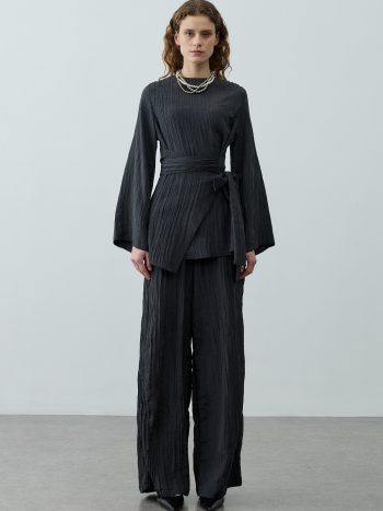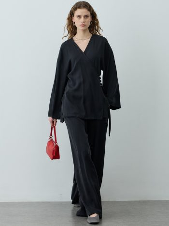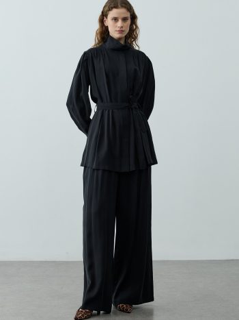 Kıraşlı Bağlamalı Pantolonlu Takım Siyah