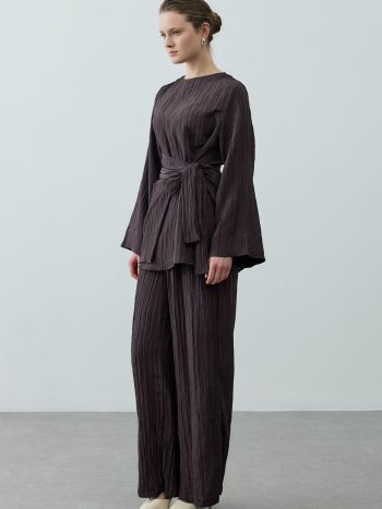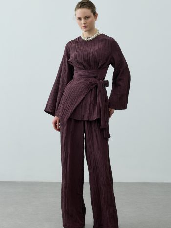 Kıraşlı Bağlamalı Pantolonlu Takım Mürdüm