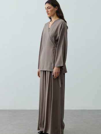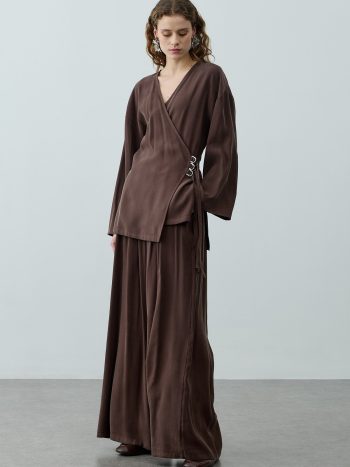 Kıraşlı Bağlamalı Pantolonlu Takım Kahverengi