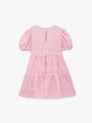 Kat kat yapısı ve fisto detaylarıyla dikkat çeken elbise, balon kollu tasarımıyla her bebeğin dolabında yer almaya aday! Diz üstü