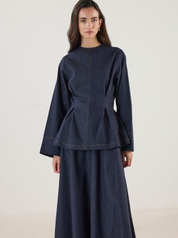 Pile Detaylı Kot Bluz Lacivert