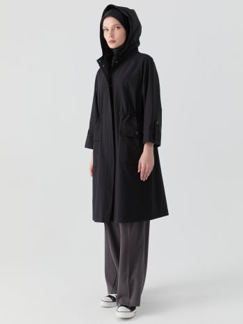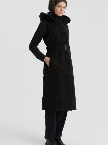 Çıtçıt Kapamalı Yırtmaçlı Kapitone Kap – Siyah