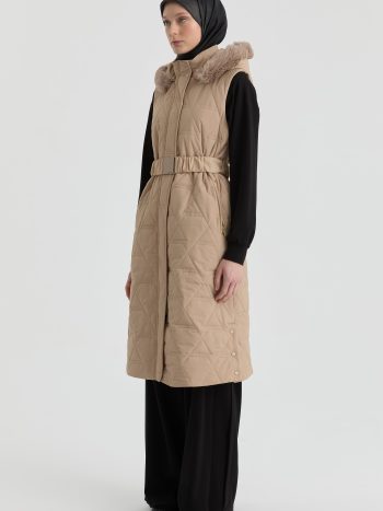 Tuğla Desenli Kapitone Yelek – Taş