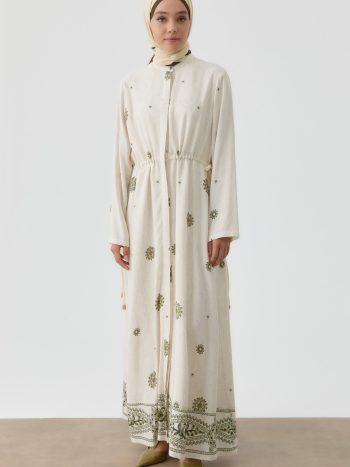 Çiçek desenleriyle romantik bir hava kazanan bu elbise, belden büzgü bağlaması sayesinde siluetinizi zarifçe vurgular. Hafif ve akıcı kumaşı, gün