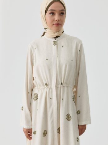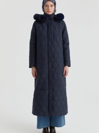 Kaz tüyünün üstün sıcaklık sağlayan hafif yapısını minimal bir siluetle buluşturan bu manto, gizli kapama detayı sayesinde temiz ve kesintisiz