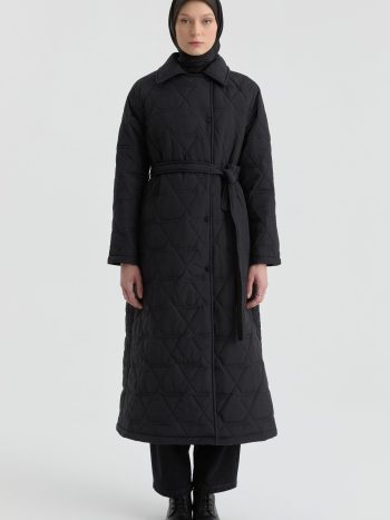 Gizli Kapama Detaylı Kaz Tüyü Manto – Siyah