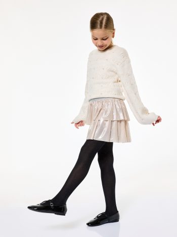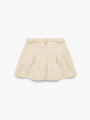 Kadife pileli etek, çocukların enerjisine eşlik ediyor. A kesim tasarımı ve diz üstü boyu ile hareket özgürlüğü sağlıyor. Pileli detayları