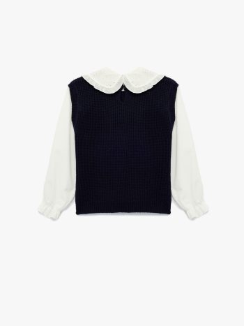 Kız Çocuk Uzun Kollu Bebe Yaka Brodeli Triko Kazak
