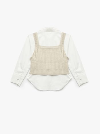 Kız Çocuk Süveter Detaylı Uzun Kollu Pamuklu Gömlek