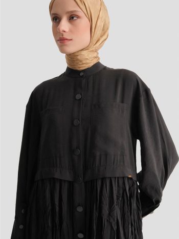 Kırışık Efektli Modal Elbise Siyah