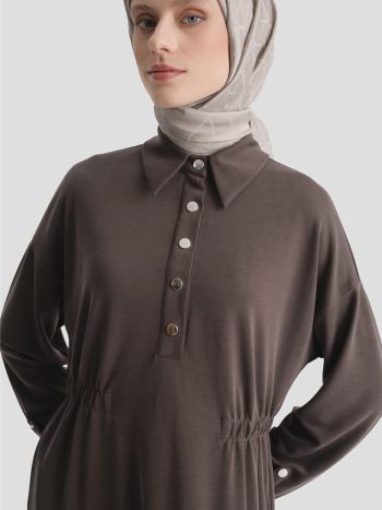 Beli Lastikli Modal Elbise Kakao