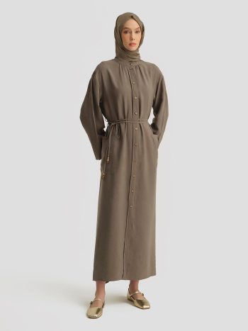 Modal Bağlama Detaylı Elbise Haki