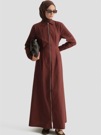 Fermuar Detaylı Fitted Elbise Kahve