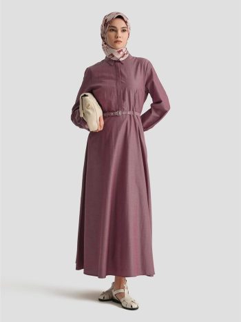 Lyocell içerikli kumaşı sayesinde hafiflik ve nefes alabilirlik sunan bu elbise, fermuar detayı ve bel kuşağıyla modern bir görünüm kazanıyor.